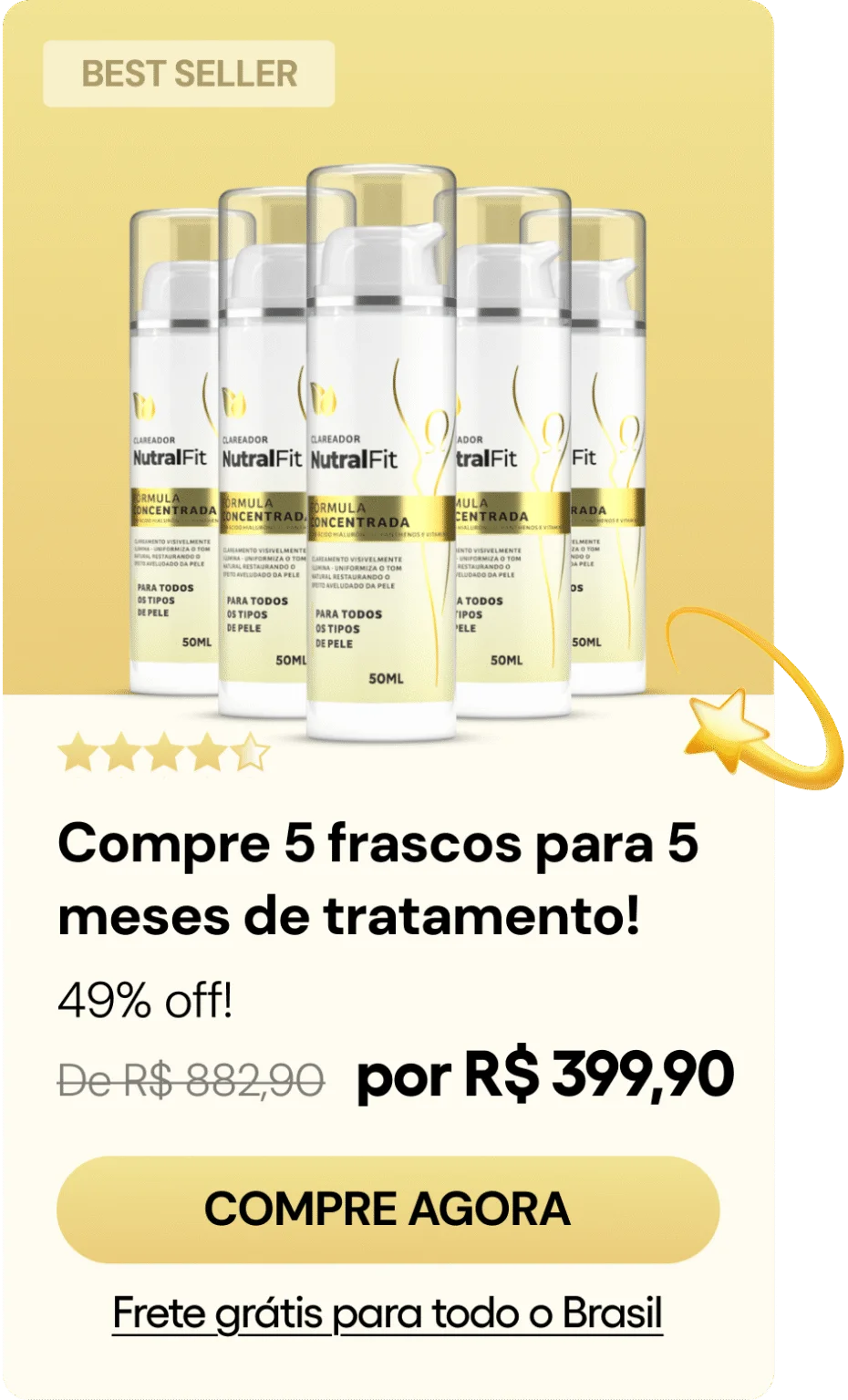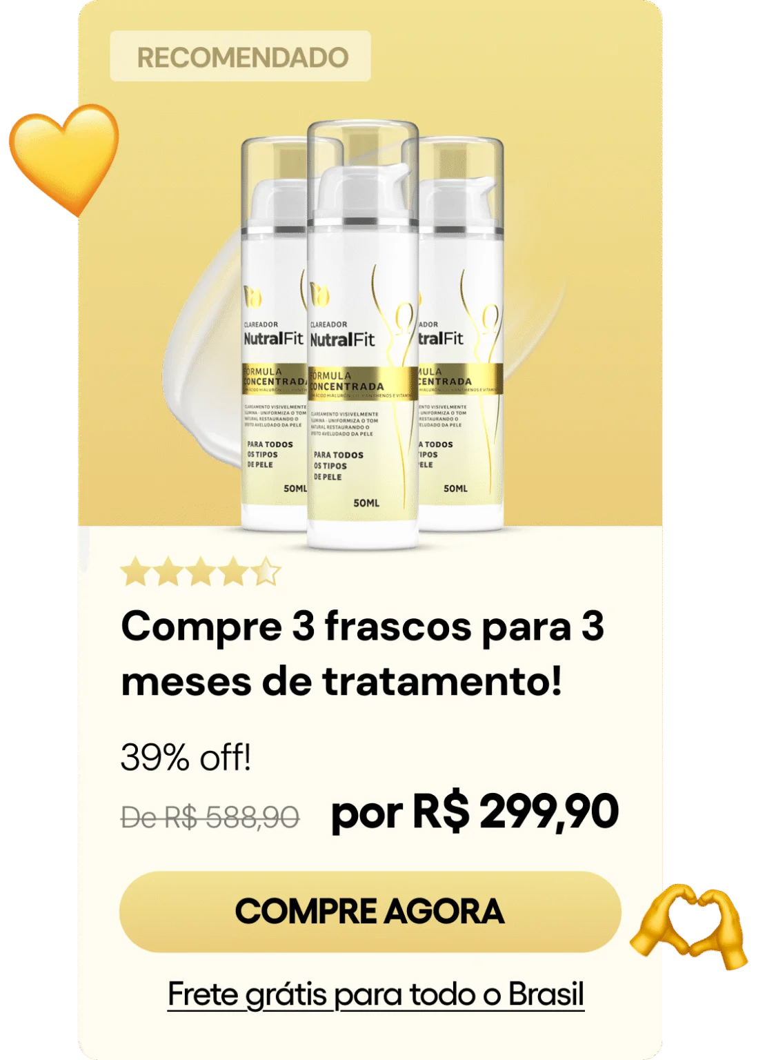 O Clareador NutralFit é aprovado pela Anvisa, o que significa que passou por rigorosos testes de qualidade e segurança. Não é produto “milagroso” de internet — é ciência, pesquisa e responsabilidade. Você merece clarear sua pele com um produto que entrega resultados reais, com respaldo legal.